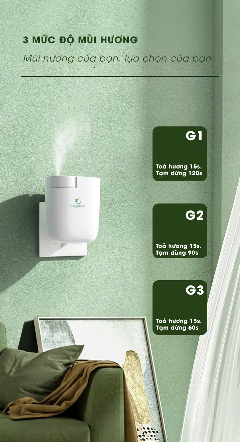 G3: Toả hương 15s, tạm dừng 60s – hương thơm đậm hơn, lan tỏa nhanh.